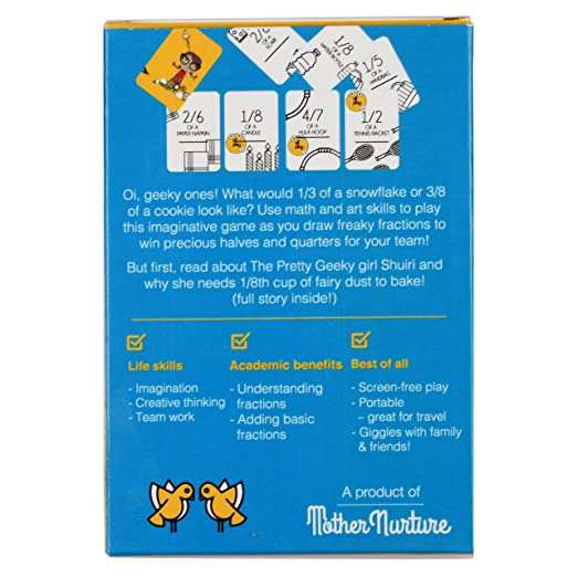 - The box includes international quality learning based card game with 48 attractive cards featuring various fractions and day-to-day objects, 1 story booklet featuring Shuiri. All the games come with simple instructions. Watch How-to-play video: https://www.youtube.com/watch?v=aIXFBF4tkKc