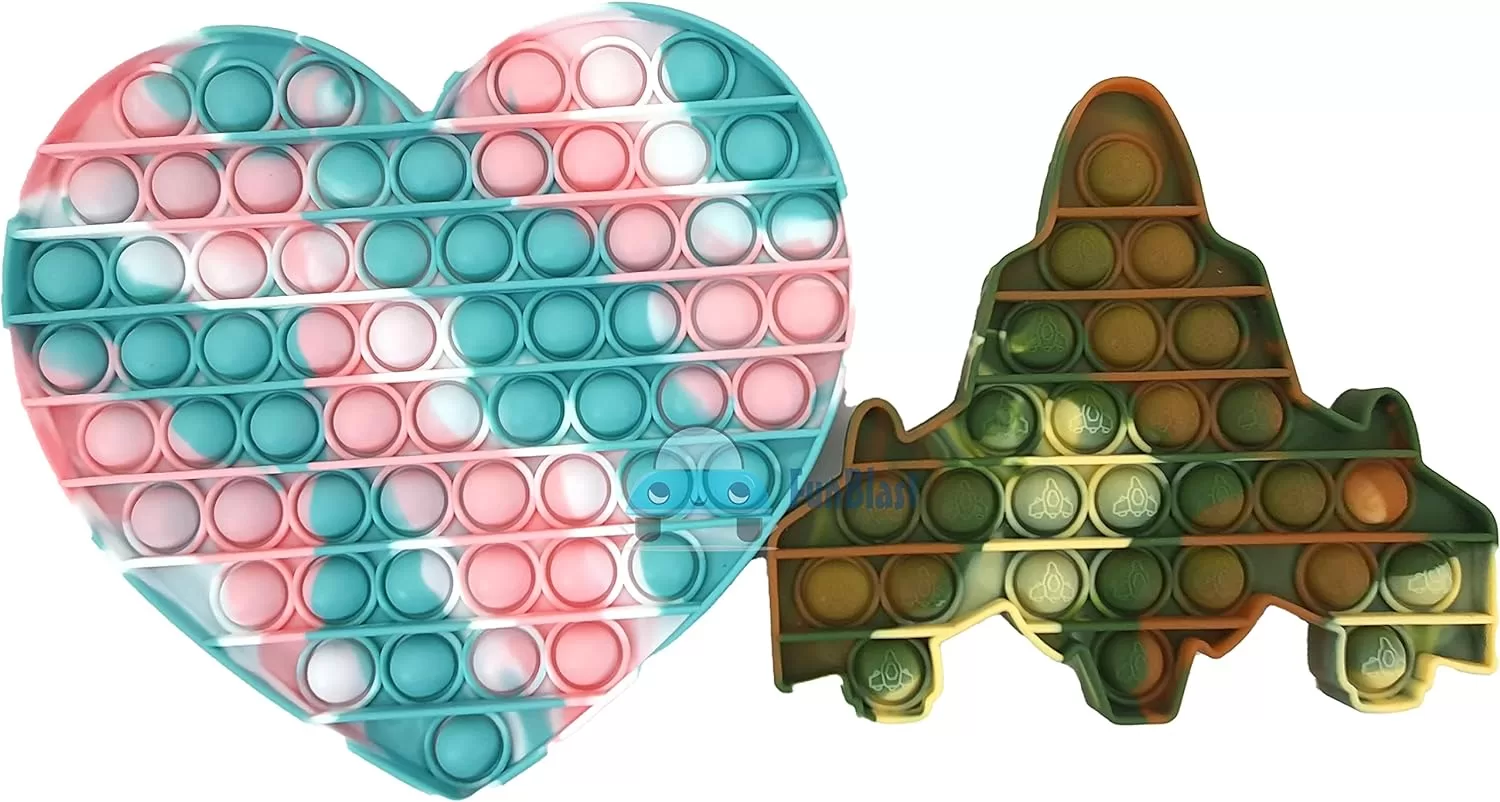 FunBlast Pop It – Popit Game, Pack of 2 pcs, Jumbo heart and Jet pop it