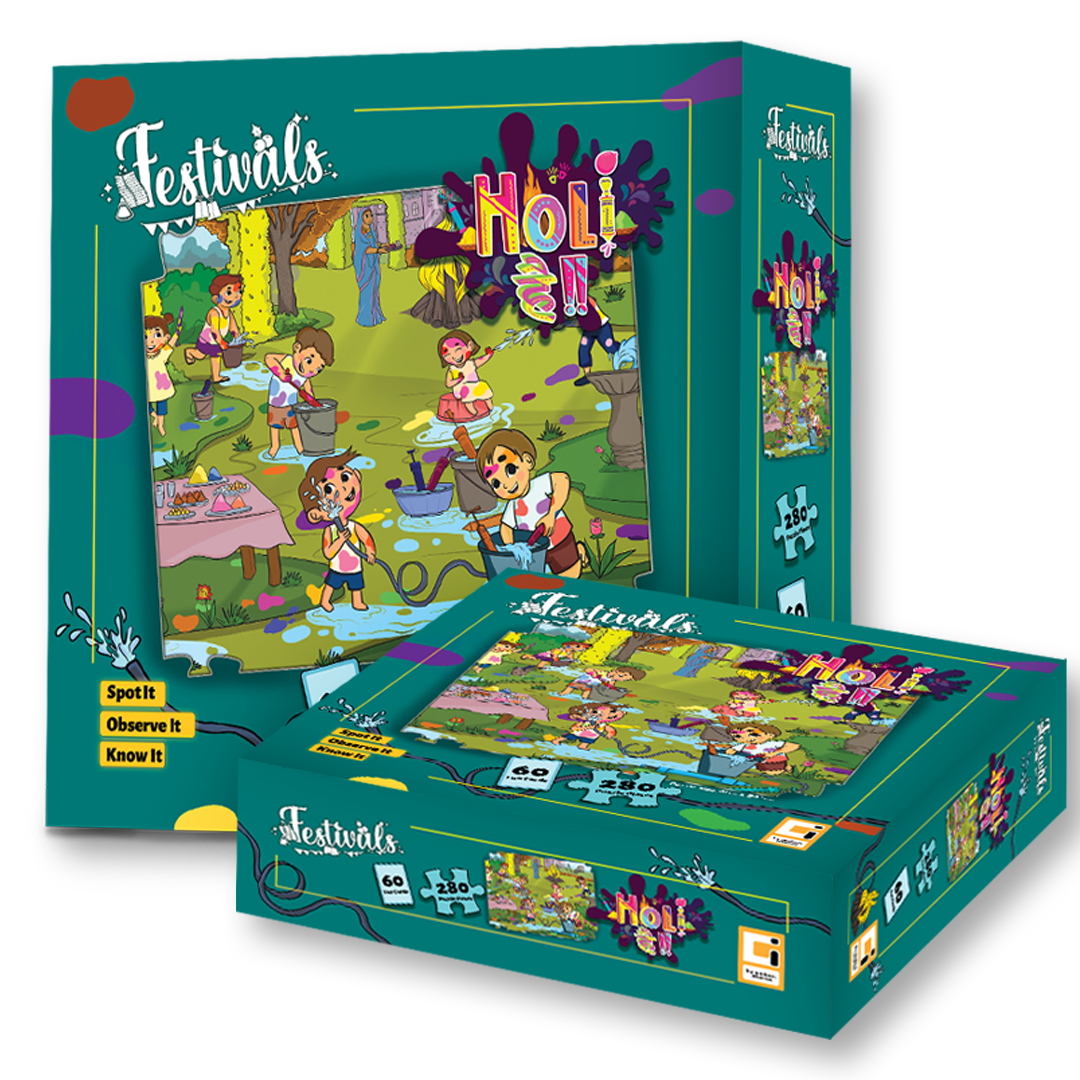 ‘Holi Hai!!’ is a beautifully illustrated puzzle, with 280 intricately designed pieces, that provides hours of fun time away from the screens. It’s the illustration of a scene that depicts the pure joy of Holi, where everybody forgets all their differences and celebrates this beautiful festival with colours and love.